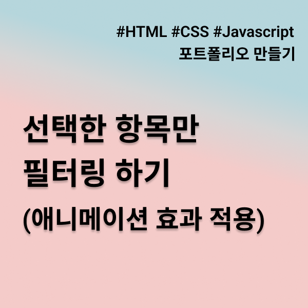 [JS ํฌํธํด๋ฆฌ์ค ๋ง๋ค๊ธฐ] ์ ํํ ํญ๋ชฉ๋ง ํํฐ๋งํ๊ธฐ (์ ๋๋ฉ์ด์ ํจ๊ณผ ์ ์ฉ)Mini Projects/make Portfolio 2022. 3. 22. 07:46