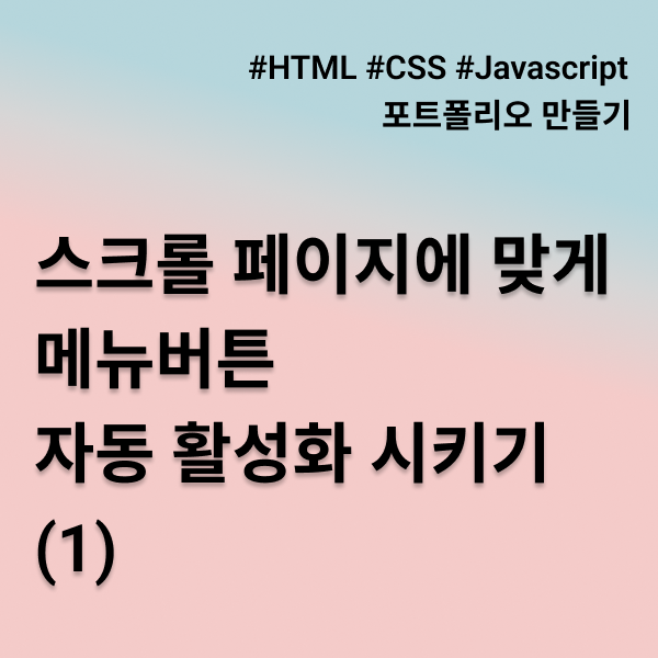 [JS ํฌํธํด๋ฆฌ์ค ๋ง๋ค๊ธฐ] ์คํฌ๋กค ํ์ด์ง์ ๋ง๊ฒ ๋ฉ๋ด๋ฒํผ ์๋ ํ์ฑํ ์ํค๊ธฐMini Projects/make Portfolio 2022. 4. 1. 06:31