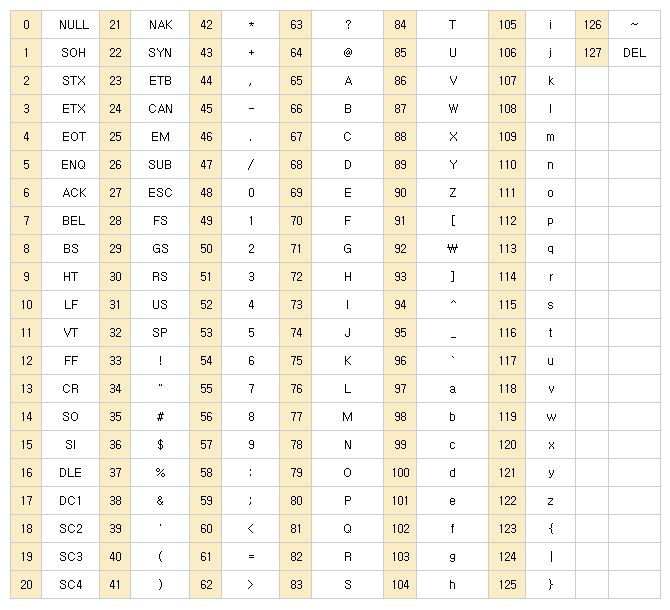 내가 '아스키코드'를 스킵해서 몰랐나보다.
